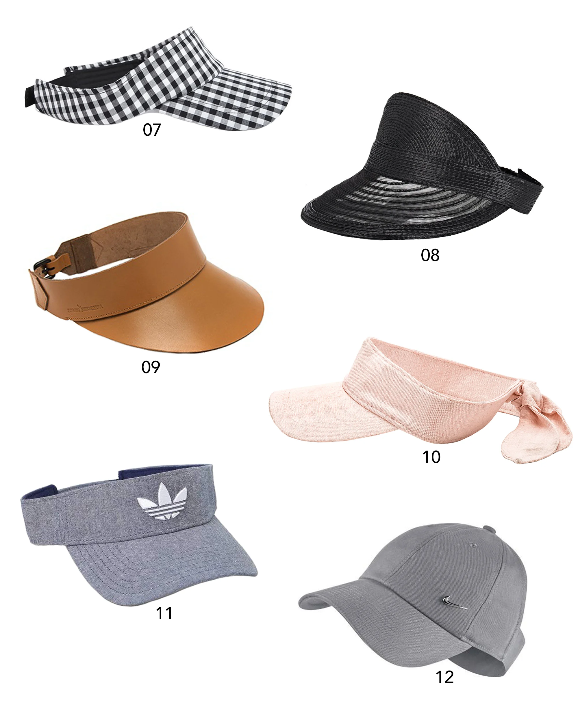 So, it should come as no surprise that the visor was next. I mean, what else would you pair a fanny pack with? They’re a 90’s match made in heaven. A simple, sporty hat that serves to keep your face shaded from the sun, it’s long secretly been a favorite of mine (I have melasma from my last pregnancy), and it is ripe for an upgrade. Luckily a wave of new styles has come out this season from glamorous versions that take after a floppy brimmed straw hat, to ones that tie in the back with ribbons and suede and are reminiscent of an old-fashioned bonnet, to those that play up the quirkiness of the accessory. We’ve rounded up all our favorites below.